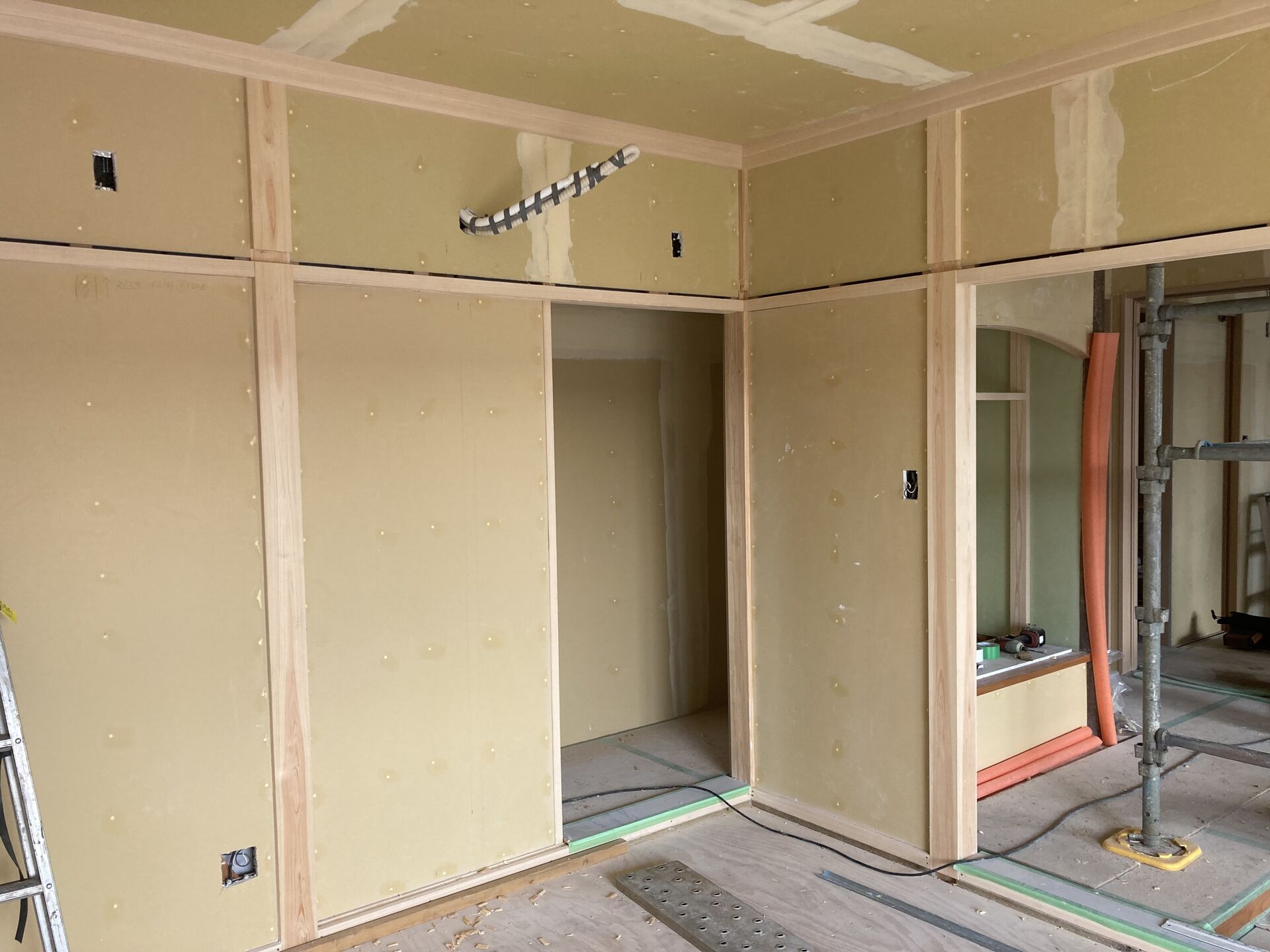先週から茨城県常総市の新築のお家にてクロス貼り施工がスタート致しました!!