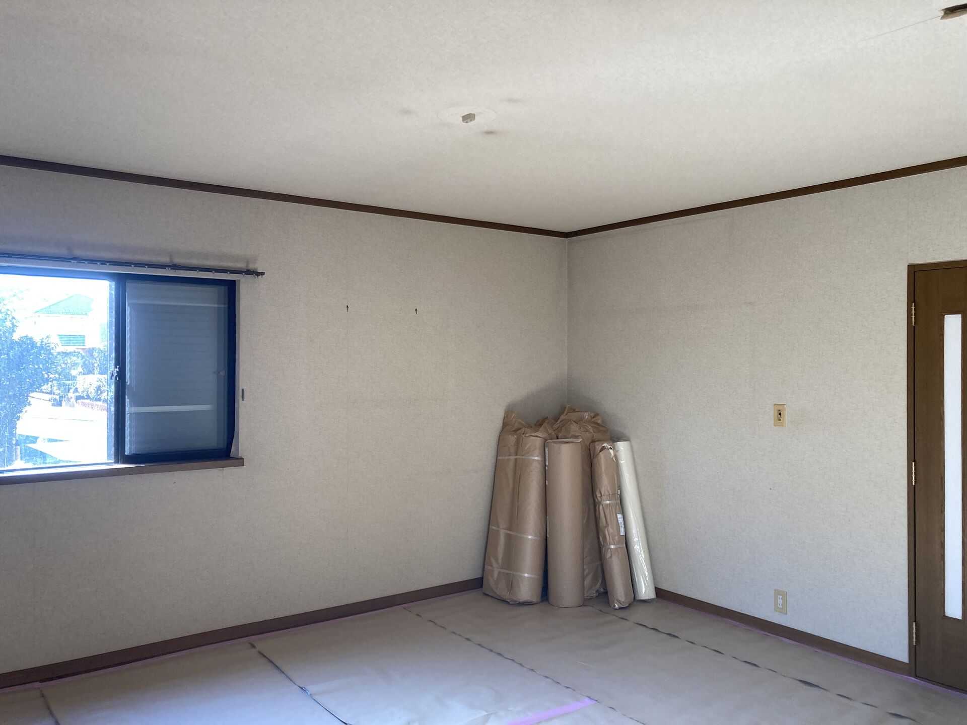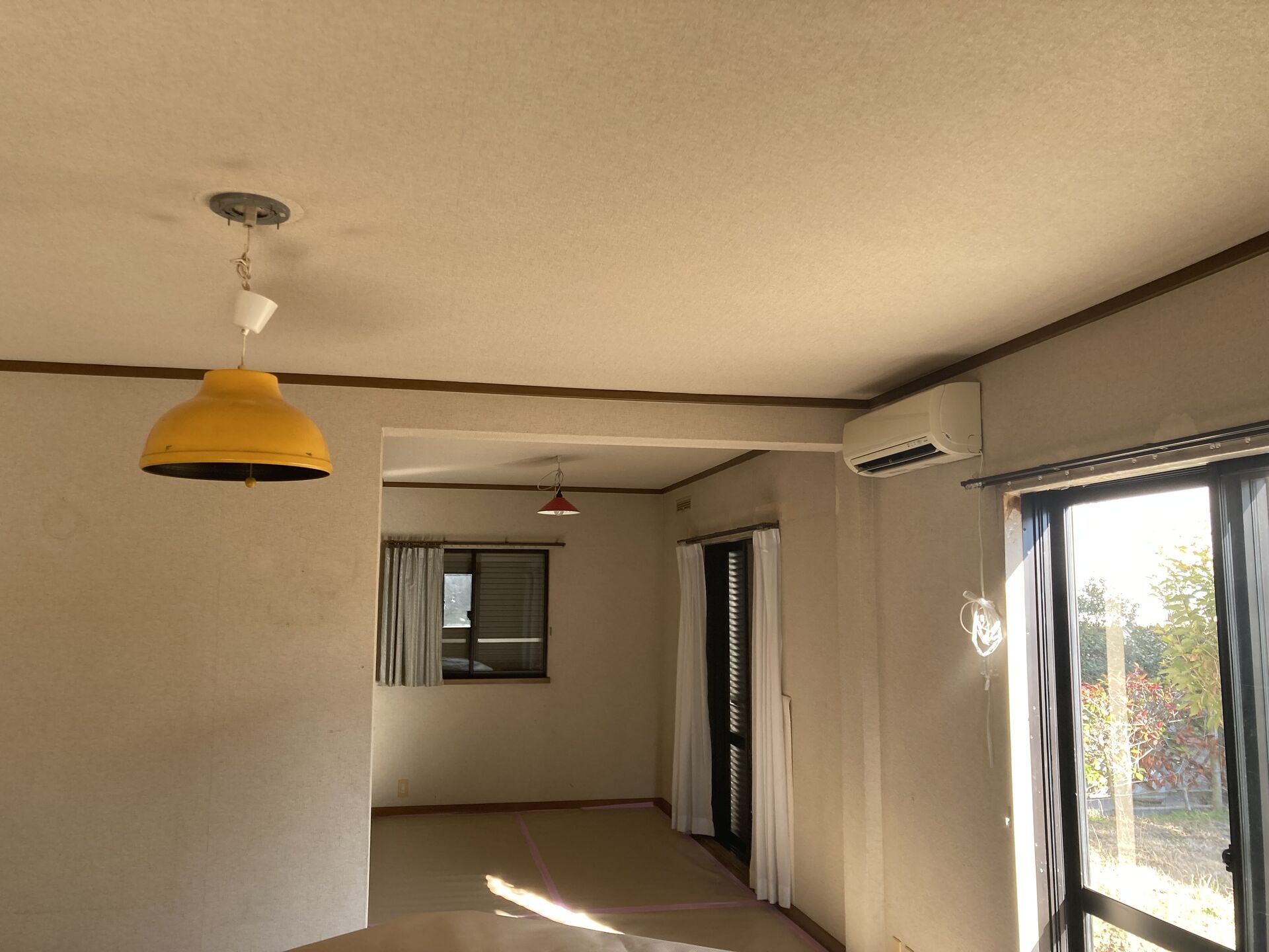 施工内容はクロス張替えとCF貼り替え、建具のダイノックシート貼り、トイレのウォシュレット交換、襖貼り替え、畳張替、網戸貼り替え、照明器具取付と大掛かりなリフォームになります。