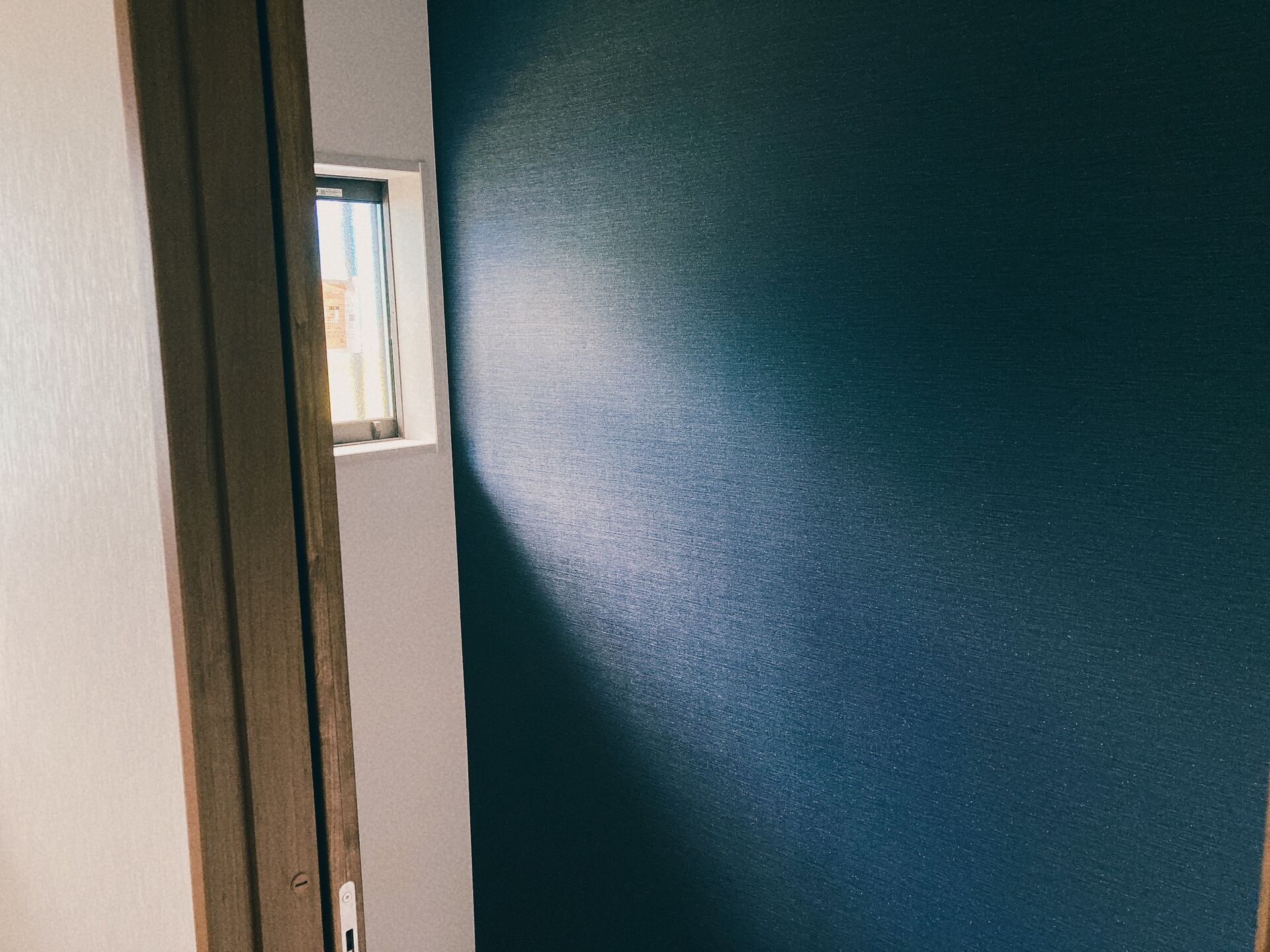 洋室もトイレにもアクセントクロスに紺色や青っぽい寒色系のクロスが使用され、